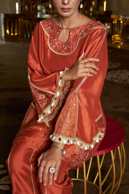 Ochre Chikankari Kurta Set - Set of 2