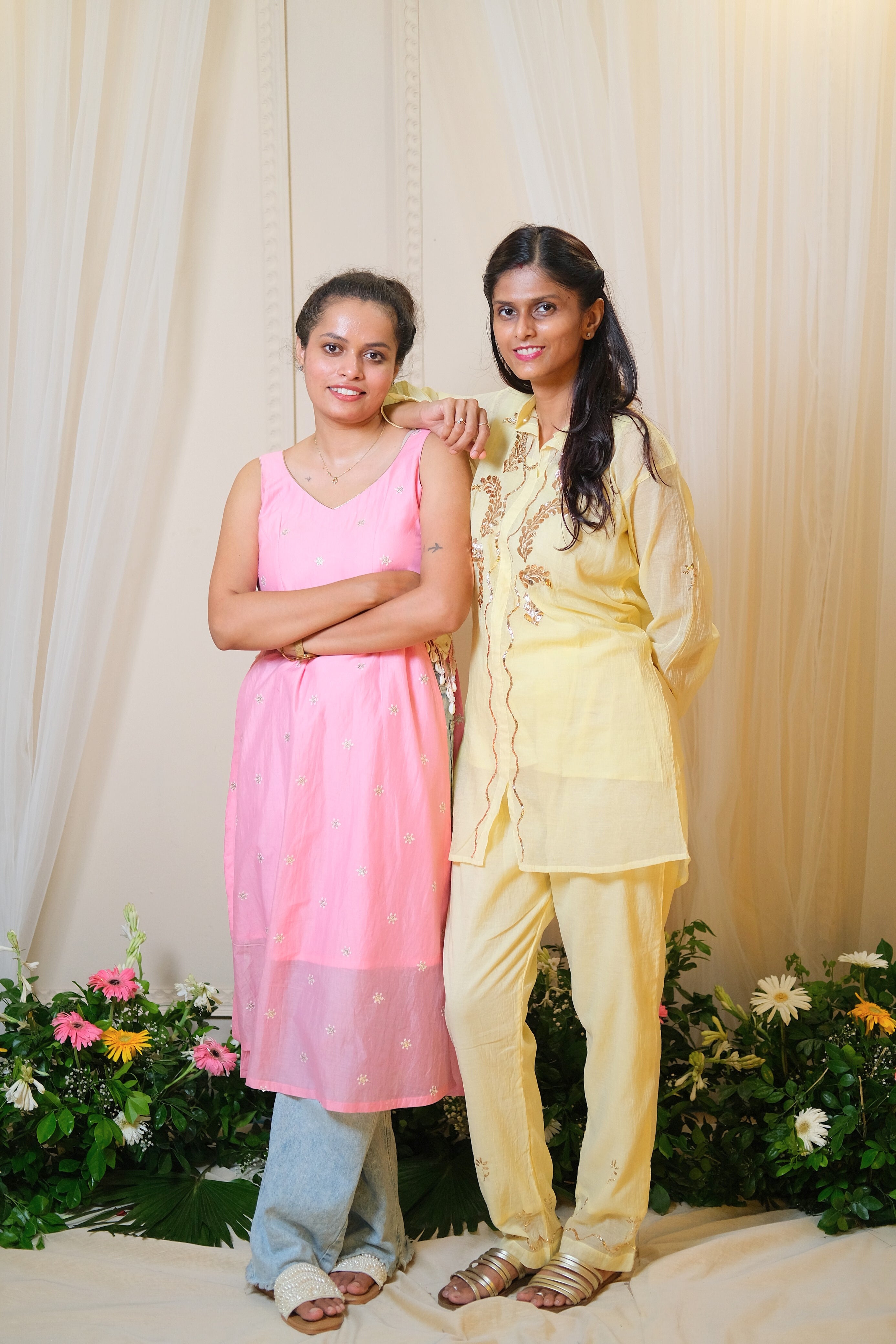 "Founded in 2022 by Vertika and Smriti, Undyed began as a two-person venture in a small room. From traveling 300km to buy our first machine within budget to going door-to-door in search of artisans for our first embroidered piece, every step has been a testament to passion and perseverance. "