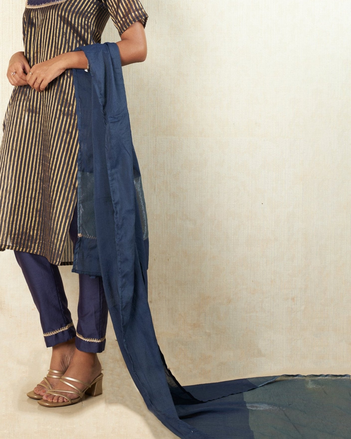 Pair Midnight Muse Kurta set with Navy blue Color Chanderi Slub Dupatta.